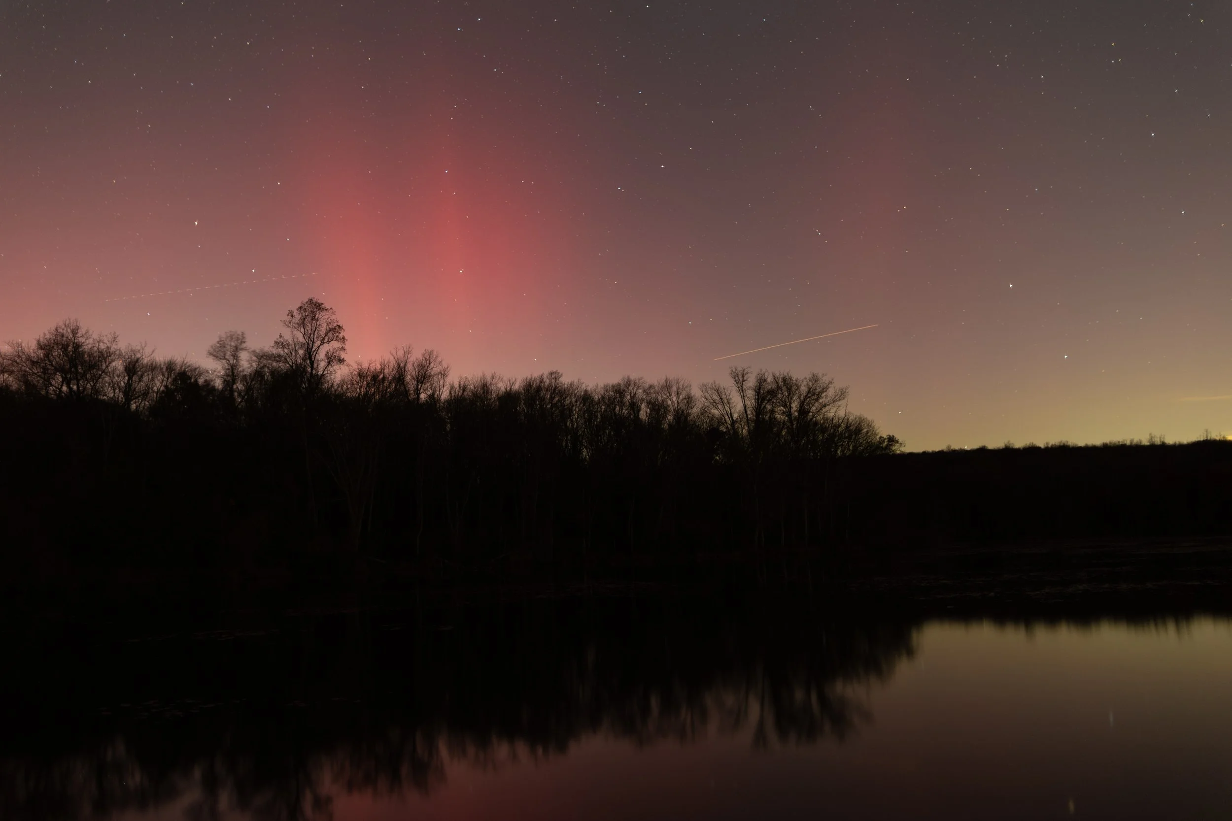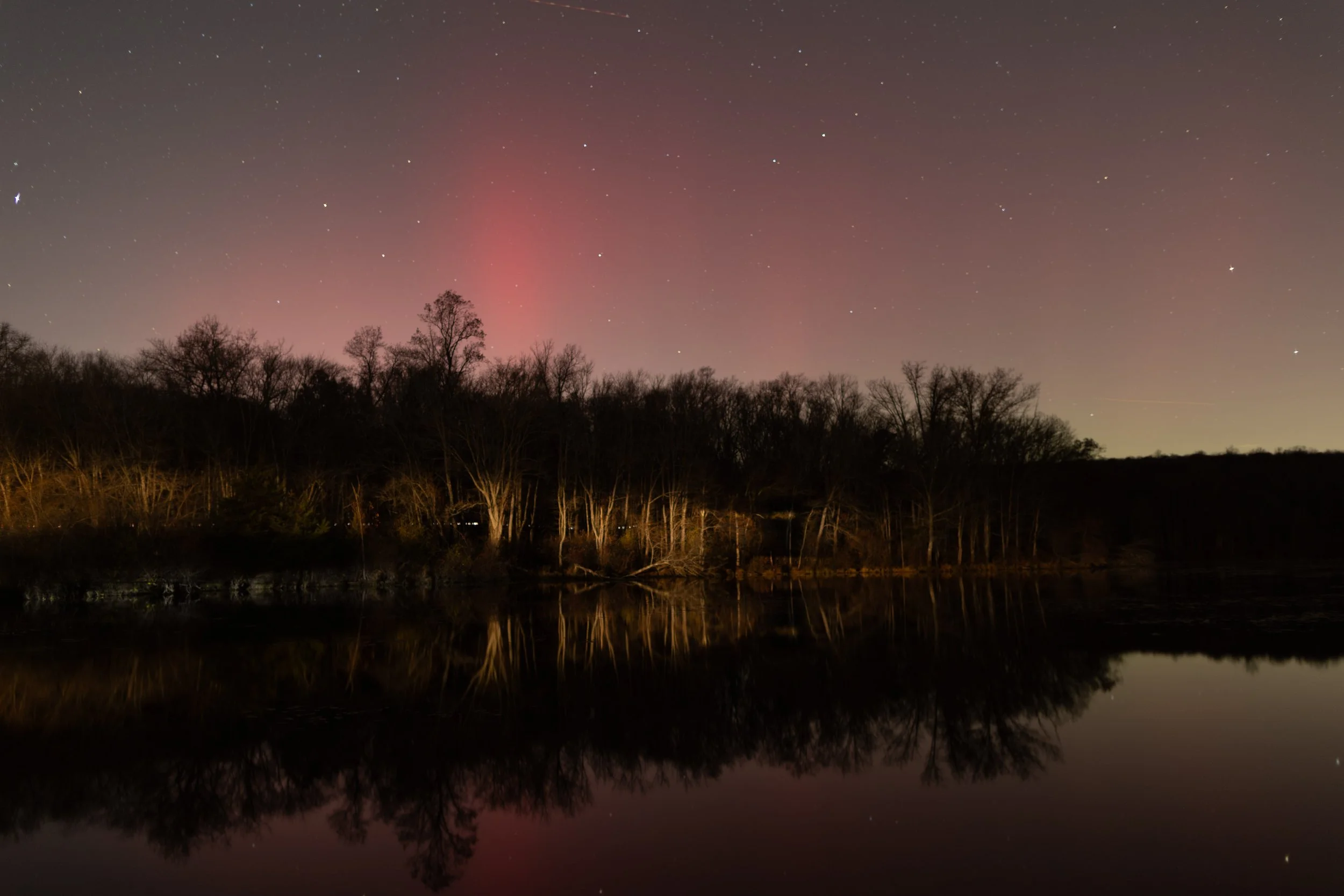 Aurora from Hopewell Lake, November 2025. F/1.4, 30 sec, ISO 100