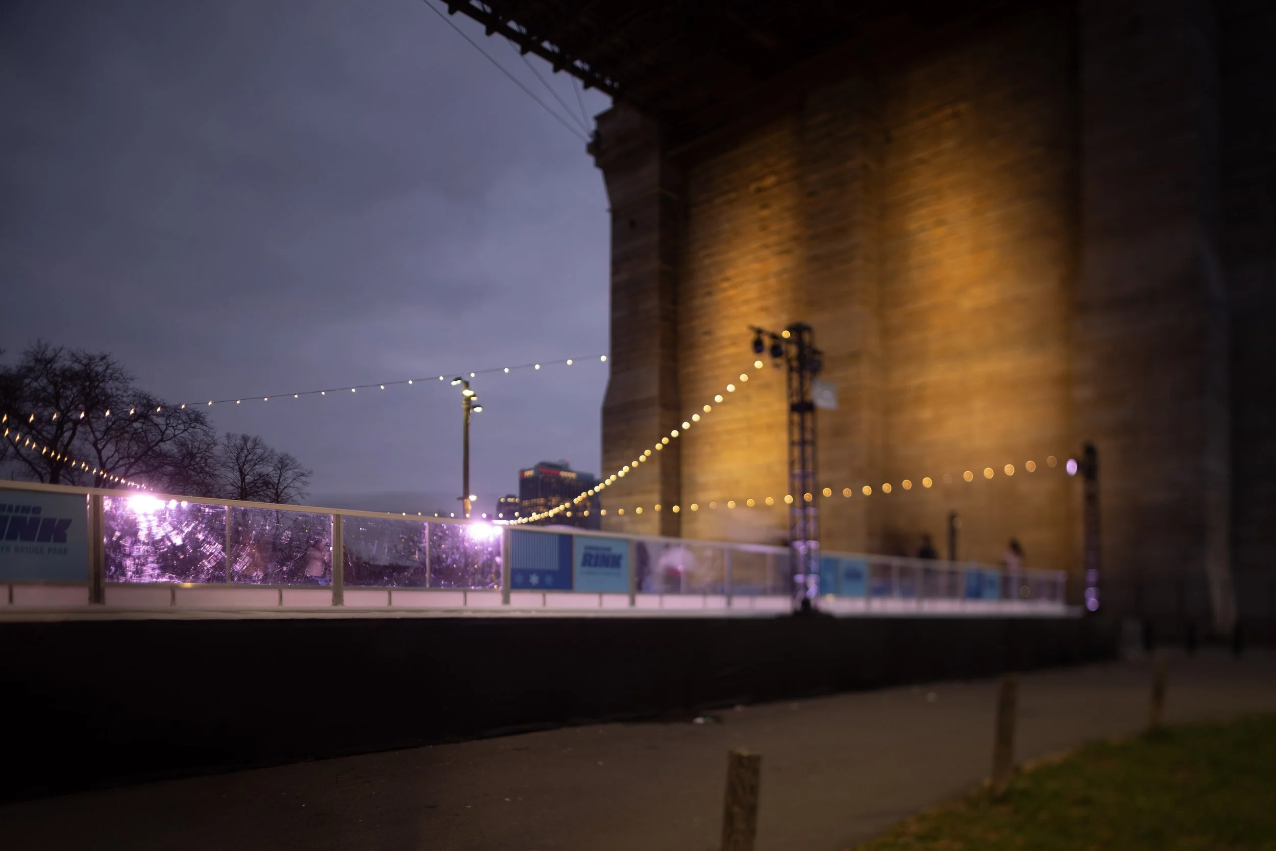The skating rink is nicely situated under the brooklyn bridge. I used wide open aperture and lens tilt to produce this wildly out of focus bridge while keeping some of the rink in focus. The miniature effect can be achieved with this type of lens tilt, but in this case, I think the bridge looks more surreal than miniaturized.